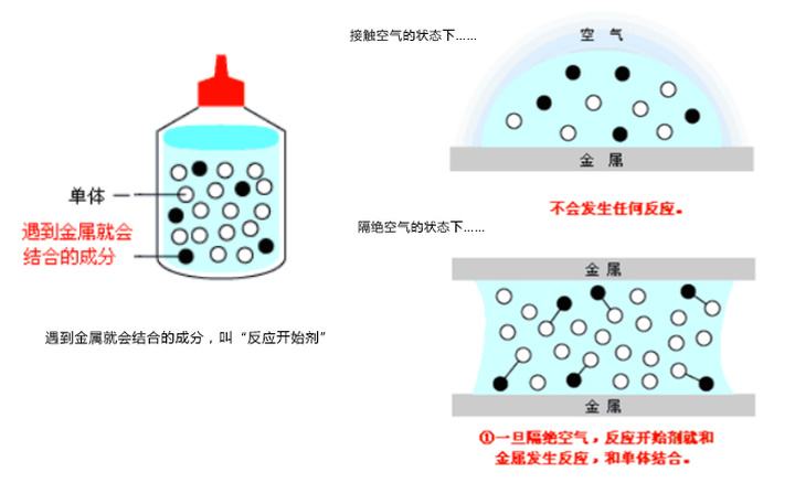 顧名思義,在有氧的狀態(tài)下,密封膠呈流動(dòng)性。一旦隔絕氧氣,引發(fā)劑引發(fā)單體產(chǎn)生聚合反應(yīng),密封膠迅速固化。